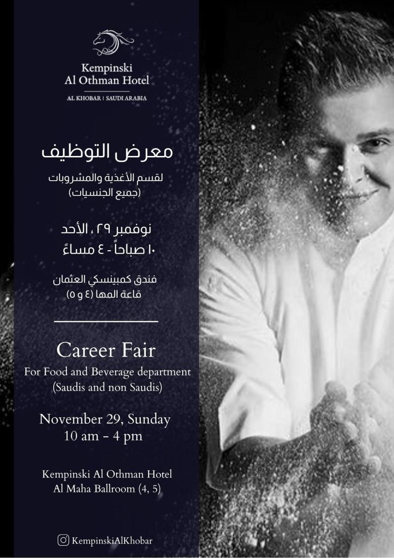 فندق كمبينسكي العثمان يعلن عن إقامة (معرض للتوظيف) لقسم الأغذية والمشروبات، ويستهدف المعرض كافة المؤهلات والتخصصات من جميع الجنسيات، وذلك وفقاً للتفاصيل التالية: