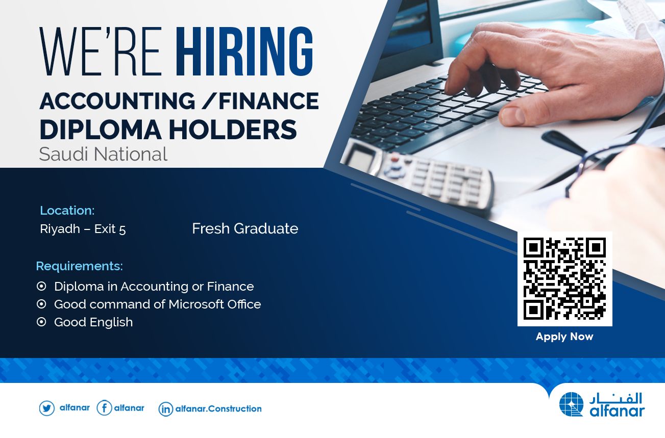 توفر وظائف شاغرة لحملة الدبلوم فأعلى (حديثي التخرج) للعمل بمدينة الرياض، مع ملاحظة أن التقديم متاح للسعوديين فقط، وفقاً للتفاصيل التالية: