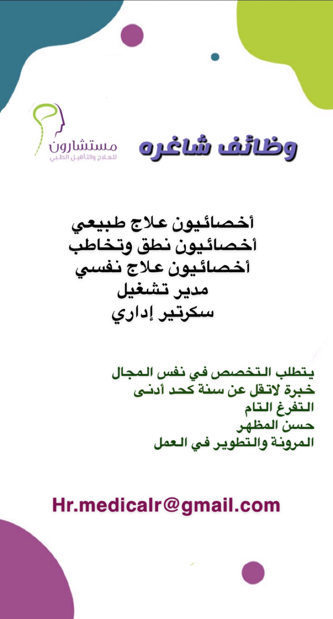 - ترسل السيرة الذاتية على الإيميل التالي:
