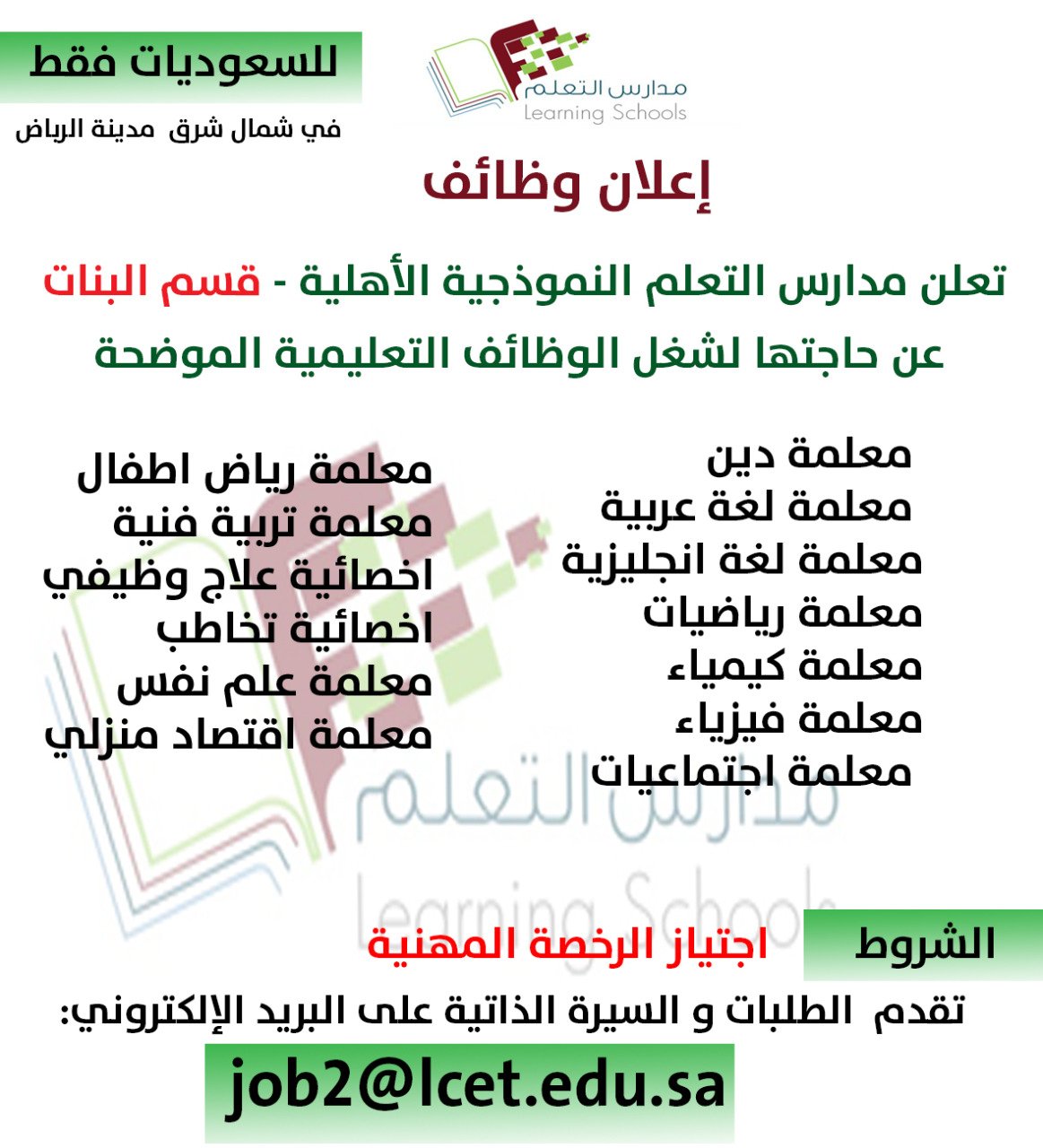 اقرأ أيضا: وظائف تعليمية بمدارس التعلم - قسم البنين