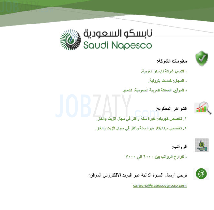 - خبرة (1) سنة فما فوق في مجال الزيت والغاز.
