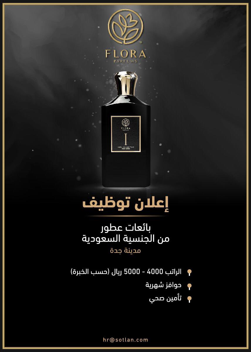 توفر وظائف شاغرة للعمل بمجال مبيعات العطور في كبرى المولات بمدينة جدة - مع ملاحظة أن التقديم متاح للسعوديين فقط، وفقا للتفاصيل التالية: