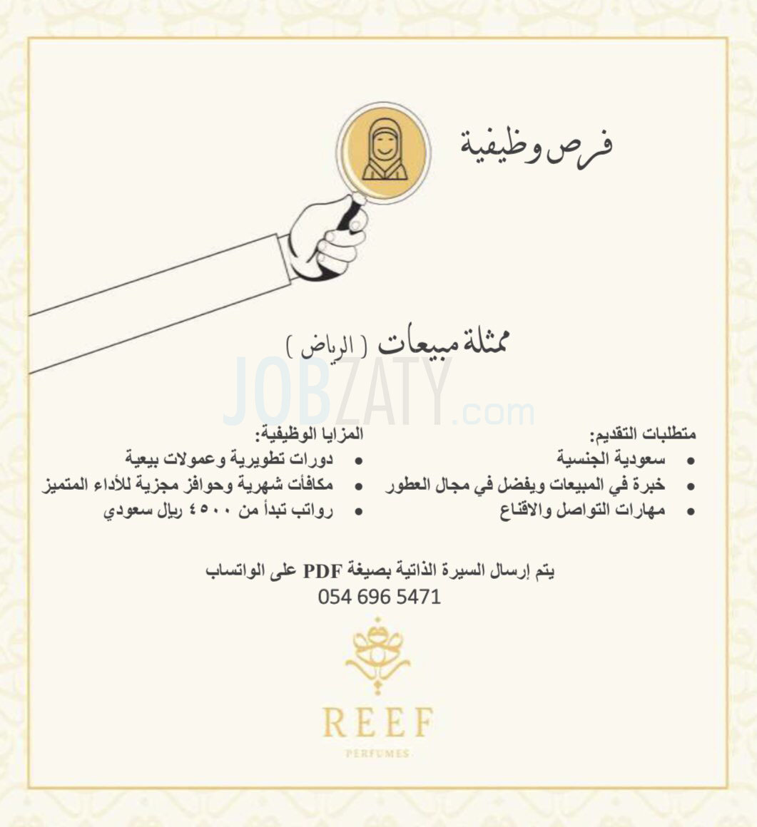 توفر وظائف شاغرة (للنساء) للعمل بمجال المبيعات، في الرياض - مع ملاحظة أن التقديم متاح للسعوديين فقط، وذلك وفقاً للتفاصيل التالية: