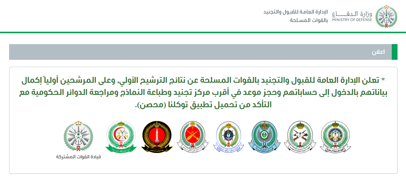 للاستعلام عن نتائج الترشيح الأولي للتجنيد الموحد: