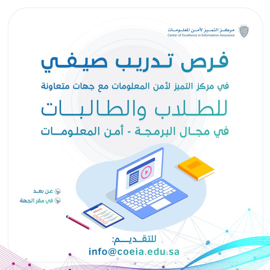 أعلن مركز التميز لأمن المعلومات بجامعة الملك سعود عن بدء التقديم في برنامج "التدريب الصيفي" للطلاب والطالبات، والذي يقام (عن بعد) ويمتد لمدة شهرين الى 3 شهور، وذلك وفقاً للتفاصيل التالية: