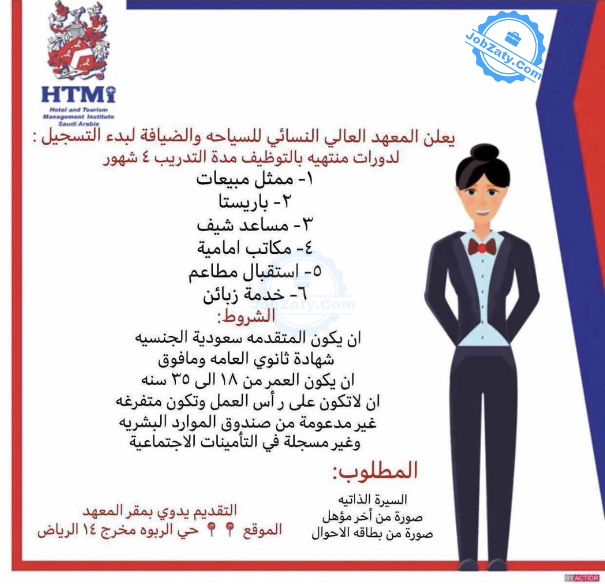يُعلن المعهد العالي للسياحة بالتعاون مع صندوق تنمية الموارد البشرية (هدف)؛ عن بدء التقديم في عدد من برامج التدريب المجانية (منتهية بالتوظيف) تستهدف حملة الثانوية فما فوق، مع شهادة معتمدة من المؤسسة العامة للتدريب التقني والمهني ، بالإضافة لمكافآة شهرية لبعض المجالات. وفقاً للتفاصيل والشروط التالية: