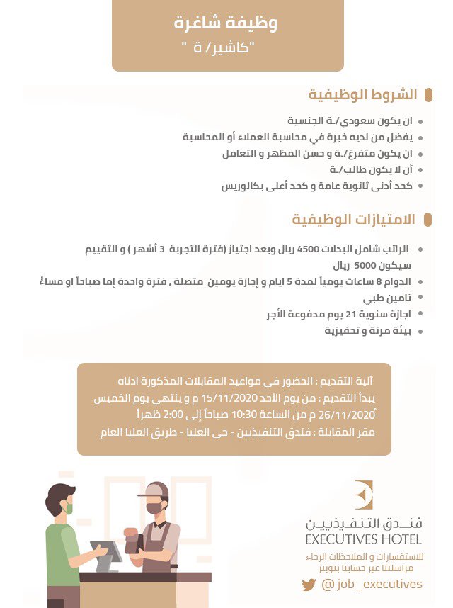 يوفر وظائف شاغرة لحملة الثانوية فما فوق للرجال والنساء للعمل بمقر الفندق (الرياض - العليا)، مع ملاحظة أن التقديم متاح للسعوديين فقط، وذلك وفقاً للتفاصيل التالية: