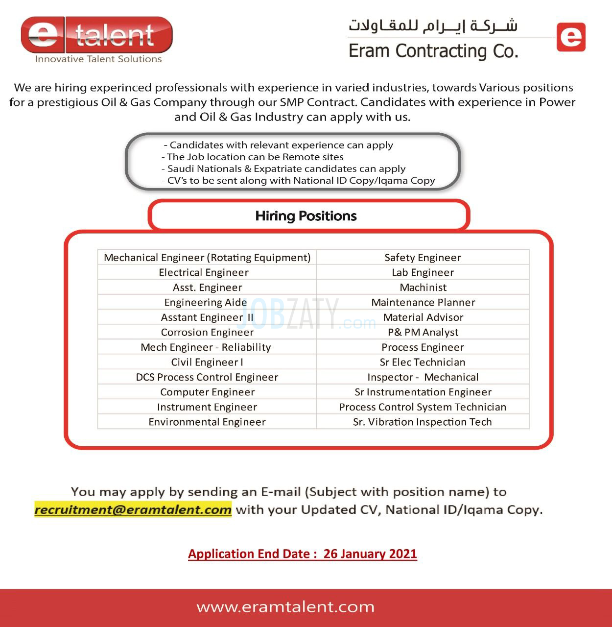 توفر وظائف شاغرة في عدة تخصصات؛ للعمل ضمن كبرى مشاريع النفط والغاز بالمملكة، مع ملاحظة أن أفضلية التقديم للسعوديين، وفقاً للتفاصيل والمسميات التالية: