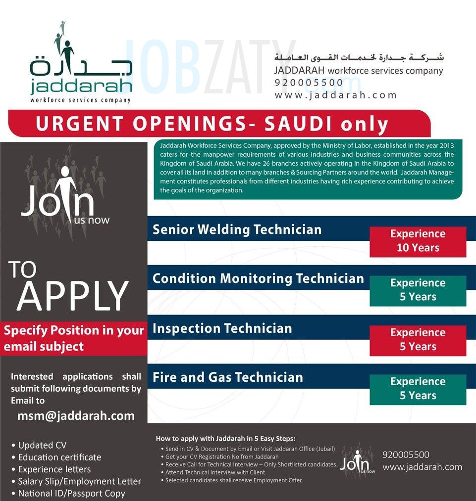 تعلن طرح وظائف فنية شاغرة لحملة الدبلوم فما فوق (توظيف عاجل)، مع ملاحظة أن الوظائف متاحة للسعوديين فقط، وذلك وفقاً للتفاصيل التالية: