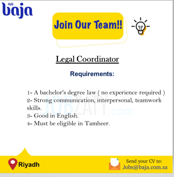 توفر وظائف قانونية شاغرة لخريجي البكالوريوس، بـ (الرياض) - مع ملاحظة أن التقديم للسعوديين فقط، وفقاً للتفاصيل التالية:
