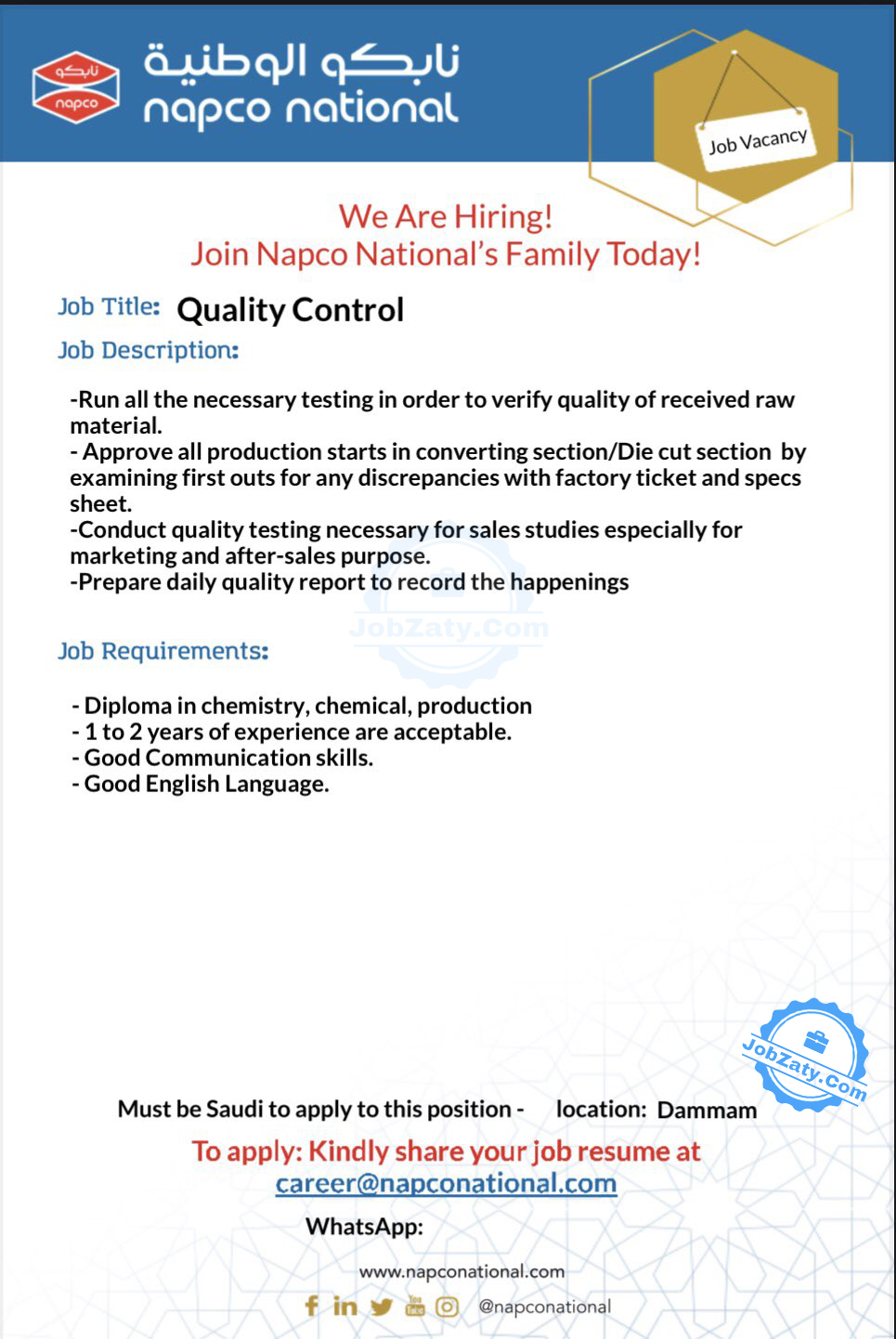 تعلن طرح وظائف شاغرة لحملة (الدبلوم، البكالوريوس) للعمل بفروع الشركة بكلاً من (الدمام / جدة) - مع ملاحظة أن أفضلية التقديم للسعوديين، وفقاً للتفاصيل التالية: