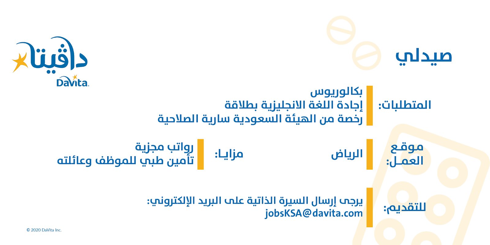 توفر وظائف شاغرة لحملة البكالوريوس للعمل بمجال الصيدلة بمدينة الرياض - مع ملاحظة أن افضلية التقديم للسعوديين، وفقًا التفاصيل التالية: