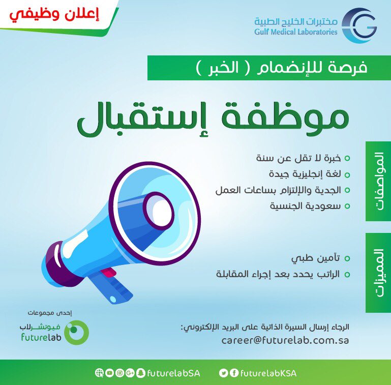 - ترسل السيرة الذاتية على الإيميل التالي (مع ذكر المسمى الوظيفي في العنوان):