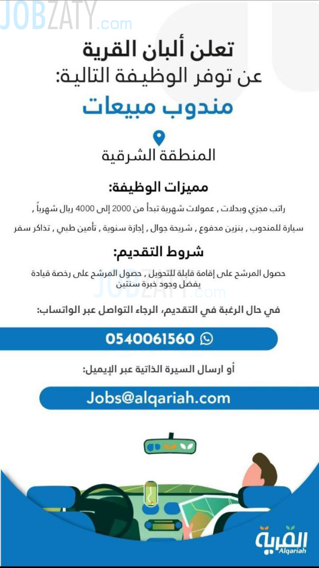 توفر وظائف شاغرة للعمل بمجال المبيعات بالمنطقة الشرقية، مع ملاحظة أن أفضلية التقديم للسعوديين، وفقاً للتفاصيل التالية: